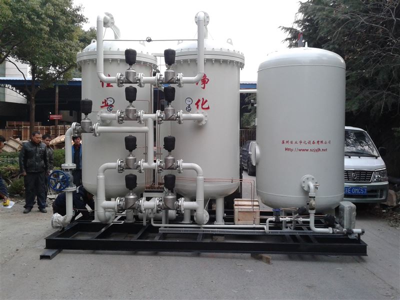 PSA工业制氧机是一种新型的空气分离装置。该装置以压缩空气为原料,沸石分子筛为吸附剂,利用空气中的氧和氮在沸石分子筛中的扩散速率不同,采取压力回转的方式使空气中的氧和氮分离,氧气的纯度和气量可根据可用户使用需要设计。